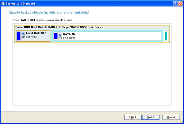 Backup to VDボタンをクリックして作業を開始します。別に下図のようなウインドウが開くので、ここで順次設定を行います。