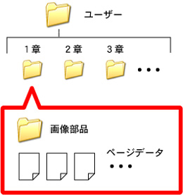 設定ファイルの編集は初心者の方には少々とっつきにくい面もありますが、メモ帳で即座に値を変更してROOTSの動作を変えられるので、慣れればたいへん便利なものです。ROOTSは構造自体もイメージとして捉えやすい形になっているため、直感的でわかりやすいのが特長です。一般のアプリケーションソフトではデータ自体がどのような形になっているかさえ全くわかりません。ROOTSなら例えば章をそっくり別の内容に置き換えたいと考えた場合、どのフォルダをどうすれば良いか、即座にイメージすることができるはずです。ユーザーのデーターはユーザー自身が管理することで、様々な応用を可能にしています。