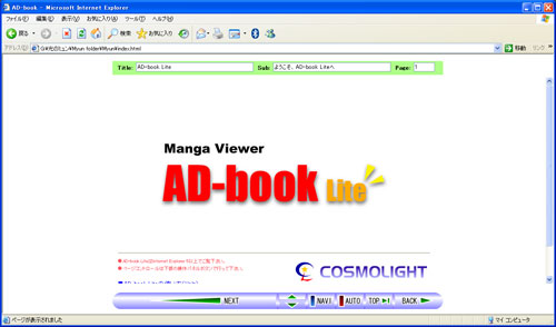 最後に補足ですが、最初に表示するスタートページはホームページ内に配置しても良いし、電子ブックプログラムを直接起動するプラットフォームにも使えます。スタートページで1クッション置くことで、電子ブックの独立性を担保したわけです。当時はブラウザから別ウインドウを開き、その中でコンテンツを見せることが先進的でもあり流行でもあったのです。ポップアップと呼ばれるこの手法を、Liteでもいち早く導入したわけですが、後に大問題に発展することには全く想像が及びませんでした。詳細については後継のAD-BOOKシリーズ中で再び取り上げます。