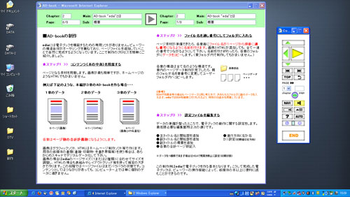 商用を考えていたediaのツールキットには、マニュアルや練習のためのチュートリアルが含まれていました。マニュアルは後にAD-BOOK「ROOTS」を使ってまとめ上げています。Windows7の最終ブラウザであるIE11までならサウンド以外は動作するようです。その他のブラウザでは表示等も含めてやや問題があるものの、Chrome(バージョン90)でも動作することを確認しています。サウンド機能は当事の技術によるもので、今となっては特殊な方法で実現しているため、古いIE6等でしか正常に動作しません。マニュアルにはediaで電子ブックを作る方法やAD-BOOKの原理等の様々な情報が掲載されています。ediaの理解を深めるのにも役立つと思いますので、興味ある方はご覧下さい。