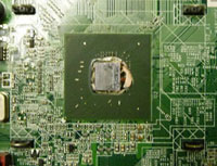 前記2点を除けば、他にはこれと言った特長はありません。スリムな割りに重量があり、台座が無いと安定も悪い代物です。同じスペックのパソコンと比べても処理が遅いと感じるし、これでもかと言わんばかりの大量のソフトウェアがプリインストールされている点も、個人的にはマイナス評価です。しかも、このパソコンには公になっていない重大な欠陥があります。 その欠陥とは、本機に使われているグラフィックチップ(GPU)が、経年の熱ストレスによってハンダ不良(断線)を起こし、電源は入るが起動しなくなる現象です。画面表示もされなくなるので症状はすぐに分かります。原因はチップの製造不良らしいのですが、欠陥品を販売したのはパソコンメーカーの責任です。ところが一切は闇の中で、一般には全くと言ってよいほど知られていません(私も知りませんでした)。企業で使用されるケースも多かったでしょうから、それなりにうまく立ち回っていたのかもしれません。個人所有では恐らく法外な修理費用が請求されたはずです。残念ながら老舗メーカーと言えども、企業体質はこんなものなのでしょうか。 修理するにはリフローによるチップ交換が必要です。これには大きなコストがかかり、今となってはそこまでして修理する価値はありません。それこそ部品取りにして残りを廃棄するしかありません。しかし、実は1つだけ簡単に延命する方法があります。チップをヒートガンで短時間高温にさらすのです。その程度でハンダ付けが回復するわけでは無いので、実際のところ完全な修理ができるわけではありません。恐らく高温にさらすことで基板が膨張・収縮し、一時的に断線したハンダ部分が接触するのでしょう。ミクロな目で見れば、断線部分は引きちぎられたような複雑な形状をしているはずです。元々信号端子のインピーダンスは極めて高いので、針の先でも接触しさえすれば、導通が回復するのではないかと思います。