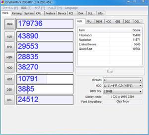 それでは今回組んだPCの部品概要です。 メモリーは8GB実装しているので、OSはWindows 7の64bit版をインストールします。Mini-ITXながらオンボード機能が充実しているため、拡張ボードは無しです。マザーボード上にS-ATAコネクタが6基あるため、全て活用できるようにSSD×1、HDD×2(RAID)、HDD×1(SINGLE)、外部eSATA×2としました。最後のポートはスロット金具での増設です。マザーにもeSATAが1基付いているので、ストレージを最大3基まで外部接続できます。CPUのTDPは65Wと割合少なく、別途グラフィックカードも実装しないことから、電源は200W程度あれば十分と考えました。実際発熱も少な目で、省エネ性も悪く無いと思います。
