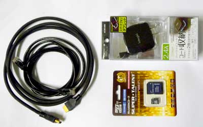 テキストの第1章にボードの詳細や動作に必要なものが書かれているので、よく読んで参考にして下さい。途中で電源や記憶容量が足りなくなっても困るので、最初からある程度オーバースペックを見込んで揃えた方が良いでしょう。電源は最低でも700mA以上必要で、USBへの給電等を考えると2A位はあった方が良いと思います。MicroSDカードは8GBあれば足りますが、価格も安くなっているので16GBにしました。速度は現在最高速のCLASS10(CLASS4以上が必要)にします。