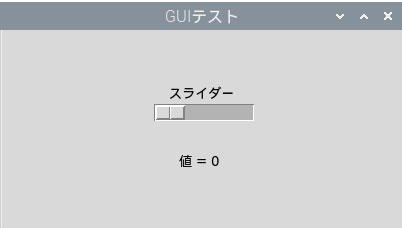 テキストで残るはスライドバーです。ボリュームやサイズ調整等色々な用途に使えます。テキストの例を元に、スライドバーを動かすとラベル値が変化するものを作ってみましょう。スライドバーにはラベルがセットになっているので、変化する値のみを別のラベルで表現することにします。