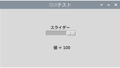 スライダーが一番左の時の値は0で、右に行くにつれて値が大きくなり、一番右では100になります。値を直接表示することはあまり無いと思いますが、この変化する数値を使って色々な操作ができます。