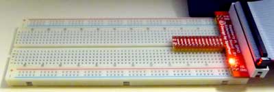●実験用のセット例 昔なら手作りするところですが、今は本当に便利になったものです。当初予定の自作ボードは、いずれ本格的な実験をする時に作ることにしましょう。 B+基板のGPIOコネクタは40ピンなので、IDEケーブルと同じです。ただ、実際のIDEケーブルは、20ピンが誤挿入防止のため埋められていて、残念ながらそのままでは使えません。 |