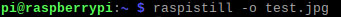 カメラのチェックはターミナル上で行います。次のようにすれば、test.jpgの名でカメラで撮影した静止画が保存されます。