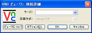 5.それではXp機からリモート接続してみます。アプリケーションはあらかじめインストールしておいたRealVNCを使いました。起動すると下図のウインドウが表示されるので、サーバーにRaspberry PiのVNCアドレスを入力します。