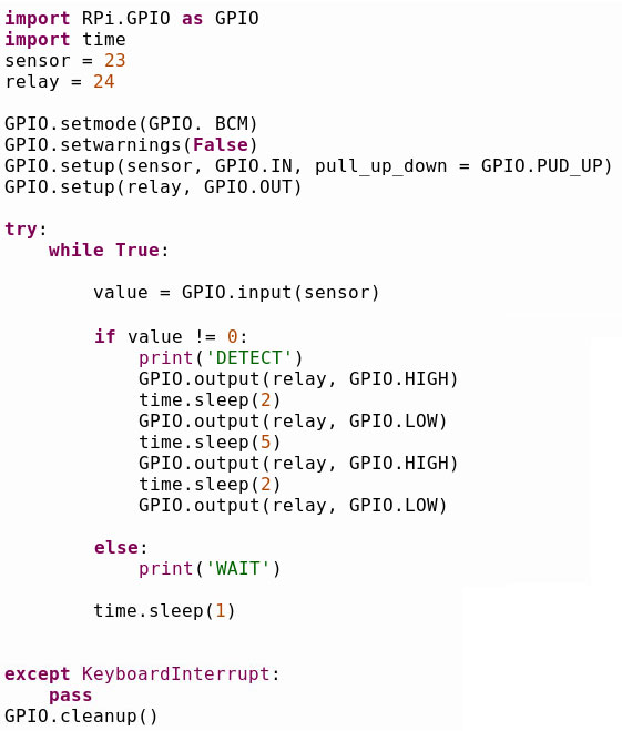プログラムはタイマーを利用した単純なものです。本来は人感センサーによる割り込みを使い、待ち時間は他の作業に専念できるようにすべきですが、それはまたの機会の課題としたいと思います。RasPiを使った実用装置として、今回は電子工作的なアイテムを製作しました。これを皮切りに、今後も色々なものにチャレンジして行きたいと思います。