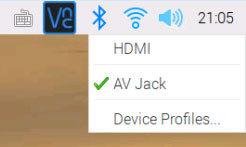 音声切り替えは、デスクトップ右上のスピーカーアイコンを右クリックし、出力先の選択肢からAV Jackを選びます。通常はHDMIが選択されていると思いますが、これでイヤホンジャックからサウンドが出力されるようになり、アンプを通して警告音を発することができます。