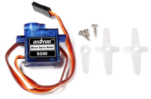 距離測定センサーとサーボモーターの組み合わせは、将来的に防犯カメラで侵入者の位置を特定するのに使うのが目標です。相手の位置がつかめれば、より正確にカメラで動きを捉えることもでき、もしもズームまで可能になれば、正体をはっきり映像で確認することができるようになります。前述の実験で距離測定ができることがわかったことから、次はサーボモーターの制御について考えてみます。センサーの首振りに利用するだけなのでさほどトルクは必要無いことから、小型のSG90というモデルを使おうと思います。実はこのサーボモーターもOSOYOOの実験セットに含まれているもので、やはりメジャーに使われているもののようです。それにしても、この実験セットは実に役に立つパーツが色々収められていて、毎度のことながら感心するばかりです。