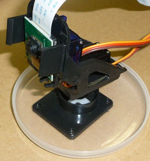 カメラマウンタを連動させる方法ですが、先の実験によって検知した物体の方向が分かるので、その角度にカメラマウンタを回転させれば良いわけです。うまくすれば物体の移動に合わせて向きを追従させることができるはずです。その機能を追加したのが次のサンプルです。
