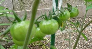 構想編で育てているミニトマトは、そのまま手作業で栽培を続けています。植えて1ヶ月ほど経過したので、少しずつ実が付いてきました。このところ雨の日が多くて、水やりの手間が少なくて助かります。最近はずらりと房でつながったミニトマトが多いようで、今回育てているものもそうです。茎に近い方から花が咲いて、花が受粉すると先に向かって順に育っていくのがわかります。実が育つとだんだん重くなってくるので、何かで支えてやる必要が出てきます。棒やガイドにヒモで軽く支えるように縛れば良いのですが、いちいちヒモで縛る作業は面倒です。今は暫定的に縛っていますが、自動と銘打っている以上は何らかの良い方法を考えねばなりません。ただ今検討中なので、良いアイデアが浮かべば追って紹介したいと思います。