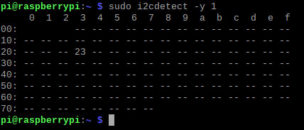 再起動した後、照度センサーが認識しているか確認します。ADDRがLなので下図のようにアドレスは23Hになっています。