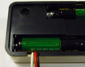 これで本体部分は改造終了です。電源部分を外に取り出しているため、電池を入れた場合は外に4.5Vの電圧を取り出すことができます。実験等で5Vの電源が欲しい時に簡易的に使うこともできて便利です。逆に電池を入れない場合は外部から電源アダプタ等を利用して4.5V(5Vで良い/USBからの給電も可)を供給します。人感センサーを使う場合は電池の消耗が大きくなるため後者の方が良いでしょう。