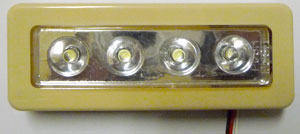 回路がむき出しと言うのも見苦しいので、センサーとトランジスタのスイッチング回路を小さなプラケースに収めました。電源が入っていることがわかるようにLED(図のPOWER LED)を点灯しています。センサー(cds)に近いため、誤動作しないように輝度を落としています。通常は220~330オーム程度で電流を数mA~10数mA流して駆動しますが、かなりの高輝度LEDなので大きな抵抗を入れています。おかげで電流値は極めて小さく(0.5mA以下)、ほとんど消費電力に影響は無いと思われます。電源ジャックを付けてあるため、電池に加えてACアダプタ等からライトに給電でき、逆にライト内の電池を電源として外部で利用することができます。(ただし、電池と外部電源から同時に給電することは禁止)
