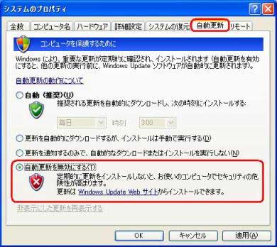 【3.対処方法】 ●Windowsの自動更新を「無効」に設定する。(下図の赤丸の項目を選択)
