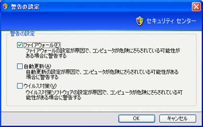 ●自動更新の無効化に伴い、不要なメッセージを出さないように通知設定を変更する。(下図のように下2つのチェックを外す)