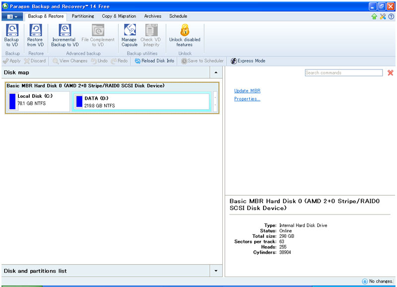 7.システムのバックアップ (2015.6.11-2019..3.13) パソコンを使用していて一番困るのは、消耗品であるHDDが壊れて使えなくなることです。仮に壊れたHDDを交換したとしても、元の環境を再度構築するのは時間もかかりとても面倒です。リカバリディスクがあれば良いのですが、中古を購入したりしてそれも無いとなると、OSを再インストールするだけでも大変な手間になります。最近ではHDDクローンを手軽に作れる機器が安価に入手できるようになったので、それを使ってHDDが正常なうちに予備を用意しておけば安心です。しかし、この種の機器はクローン用のHDDが元のHDDと同じかそれ以上の容量で無いとコピーしてくれません。表示が同じでも実際の容量がごくわずかに異なるケースもあるため、機器が使用できない場合も出てきます。 こうした時に便利なのが、ドライブやパーティーション単位でコピーができるバックアップソフトです。実際にどの程度有効なのか、Paragon Backup & Recovery 2014と呼ばれるフリーソフトを試してみました。普通はシステム領域を含むCドライブ全体をバックアップします。従ってCドライブはなるべく容量が少なくなるように、データ類は別ディスク(または別パーティーション)に保存して別途バックアップすると良いでしょう。つまり重要なシステム部分とこまめなバックアップが必要なデータは分けて考えるわけです。そうすればリカバリデータの容量自体も節約でき、保存・リカバリ時間の短縮にもつながります。作業方法はごく簡単で、処理時間もさほど長くはかかりません。リカバリデータ作成時に圧縮されるので容量も小さくなります。参考までに手持ちのHA06マザーでWindows XpをインストールしたCドライブ全体では、元が約14GBあったものがリカバリデータは8GB弱と半分近くになりました。 ●リカバリデータの作成 まずはソフトを起動します。最初はタイル状のメニュー画面が表示されるので、Backup & Recoveryを選択します。すると下図の画面になります。次回からはこの画面が起動します。最初に行うのはリカバリデータを作成して保存するまでです。データ自体はどこに保存しても構いませんが、最終的にリカバリに備えて別のドライブにコピーした上で、そこからリカバリデータを読み込む形にすると良いでしょう。