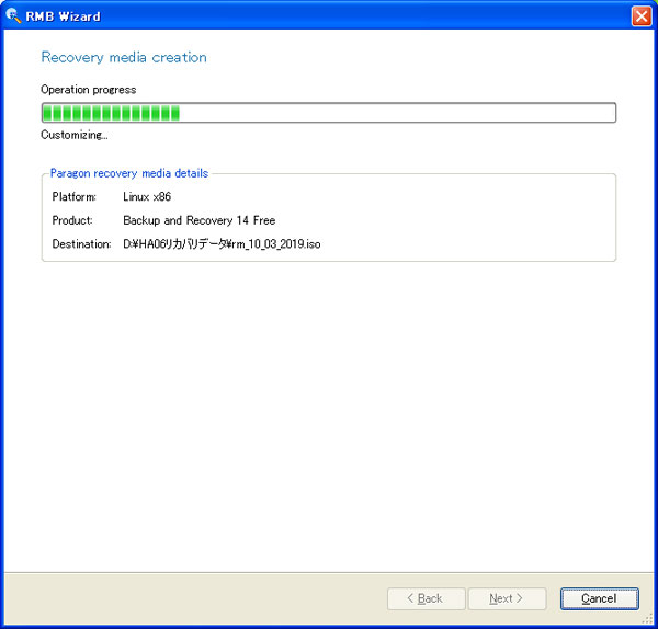 ISOイメージが作成されるまでしばらく待ちます。それほど時間はかかりません。