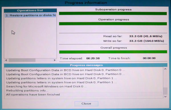 リカバリ状況を表示します。PCの性能にもよりますが、リカバリにはかなりの時間がかかります。プログレスバーで進み具合は一目でわかるので便利です。