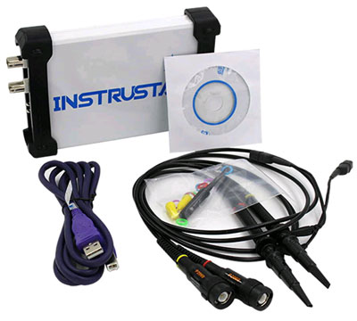 16.USBデジタルオシロ「ISDS205A」 (2021.6.3) 小型コンピューターのRaspberry Pi学習を再開してから、個人的に色々と作りたい物が出てきました。そんな時に手元にあれば強い見方になるのが測定器です。特に直接信号波形やレベルを確認できるオシロスコープは、本来であれば必須とも言えるアイテムです。実はこれまで家電やパソコンを中心に修理をしてきましたが、大部分は経験や勘に頼るもので、予想が的中すれば良いのですが、そうそういつもうまくいくわけではありませんでした。なにせ使えるものは大昔に買った小型テスターだけです。導通や電圧レベル程度は見られても、実際の信号の状態はほとんどわからないわけで、修理と言ってもまさに暗中模索だったわけです。ちゃんとした測定器が欲しいと、以前からそう思うのも無理からぬことでした。 かなり前の一時期、手元には中古で買った古いアナログのオシロスコープがありました。ですが当時はほとんど使う機会も無く、普段は大きくて重いだけで邪魔にしかならないことから、とっくの昔に処分してしまいました。ところが修理や電子工作的なことをやろうとすると、あればやはり便利だと思うのは当然です。しかし、あんなデカいものは今でも邪魔だし、小型のデジタルオシロを買うとなると高価で簡単に手を出せるとも思えません。ずっと棚上げ状態のまま現在に至るわけですが、最近になってRaspberry Pi絡みで必要性を感じるようになり、久しぶりにオシロの現状を調べてみることにしました。 以前からPCに接続して使うオシロがあることは知っていたのですが、改めてネットを当たるとその価格の安さに驚きました。オモチャのようなものでも数万円はすると思っていましたが、安いものなら3000円台でも買えることを知ったのです。同時にスタンドアロンのデジタルオシロも、2万円台位からあることがわかりました。コンピューターが目に見えて安くなったことは実感していましたが、測定器もここまで安くなっていたとは驚きです。性能を考えるならスタンドアロンである程度の価格のものが欲しいところですが、電子工作レベルでさほど高度なことをやるわけでも無く、重視するのは何と言ってもコストパフォーマンスです。とは言え、安過ぎて使い物にならないのでは意味がありませんから、それなりのものをチョイスしなければなりません。色々調べて決定したのが、今回紹介するInstrustar製の「ISDS205A」です。 どうやら中国のメーカーのようで、最近ではこうしたものまで中国製が躍進しているようです。何と言っても価格が安いのが最大の魅力で、後は性能次第と言ったところです。残念ながらこの手のものはレビュー的な記事が少なくて、参考になるような情報はほとんど得られませんでした。それでもネットでの評価はまずまず良いようなので、半分お試し感覚で購入に踏み切りました。ちょうど楽天モバイルで得た大量のポイントがあったので、消化するのに都合が良かったこともあります。普段はamazonでの購入がほとんどですが、今回は楽天市場での買い物となりました。商品価格9125円(税込)+送料890円と、これだけのものが1万円程度で入手できるのですから、実に良い時代になったものです。参考までに、更に安いところでは7000円程でも購入できるようなので、探せばもっとお得に購入できるかもしれません。購入に当たって迷ったのは、同程度の性能のHANTEK製「6022BE」です。こちらの方が信頼性や一般的な評価が高い印象でしたが、ACカップリング入力が省略されていることで除外しました。