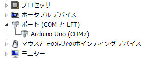 ダウンロードが終わったら解凍します。その中のarduino.exeが使用するソフトウェアです。これを起動する前に、Windowsではドライバのインストールが必要です。USB経由でPCにarduinoを接続すると、ドライバのインストールが始まります。ただし、この自動インストールは失敗するため、デバイスマネージャーでは不明なデバイスとなります。そこで手動でインストールするわけですが、やり方は不明なデバイスを右クリックしてドライバの更新を選択し、ドライバがある場所にarduino IDE(解凍したフォルダ)を指定します。今度はインストールが無事完了してPCに認識されます。