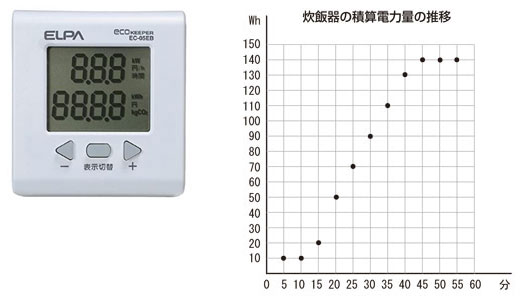 簡易電力計を入手したので、今回想定した電気ポットと炊飯器の実際の消費電力と積算電力量を測定しました。